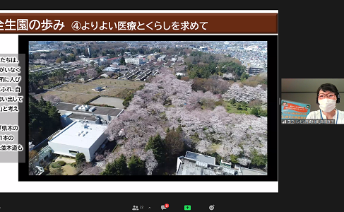 当日は前半を多磨全生園の歴史とそこでの暮らしの解説、後半を展示室の紹介と質問コーナーとしました。たくさんの質問が出て、毎回延長になるほどでした。
