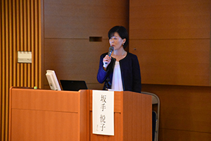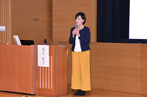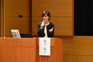 ![]() 講演の様子 (坂手悦子氏) |