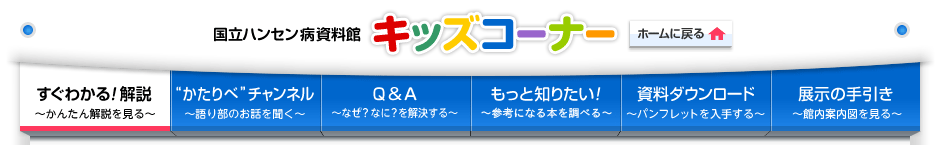 - むかしの人たちはハンセン病になる原因を、神様を信じなかったせいだとか、人の不幸を引き受ける役目だからとか、親から子へと受け継がれる病気だから、などと考えていました。