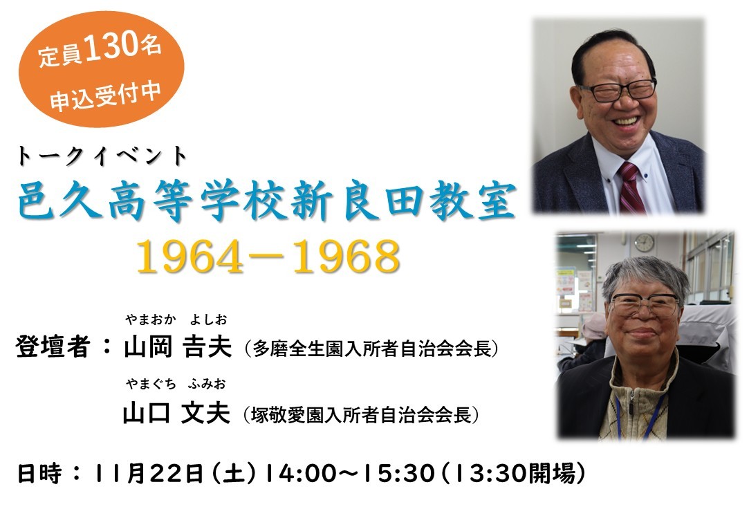 国立ハンセン病資料館2025年企画展「お父さん お母さんへ-ハンセン病療養所で書かれたある少年の手紙-」関連イベント、トークイベント「邑久高等学校新良田教室 1964-1968」の参加申込受付中です。 概要は企画展ページをご覧ください。(約3秒後に自動的に切り替わります)