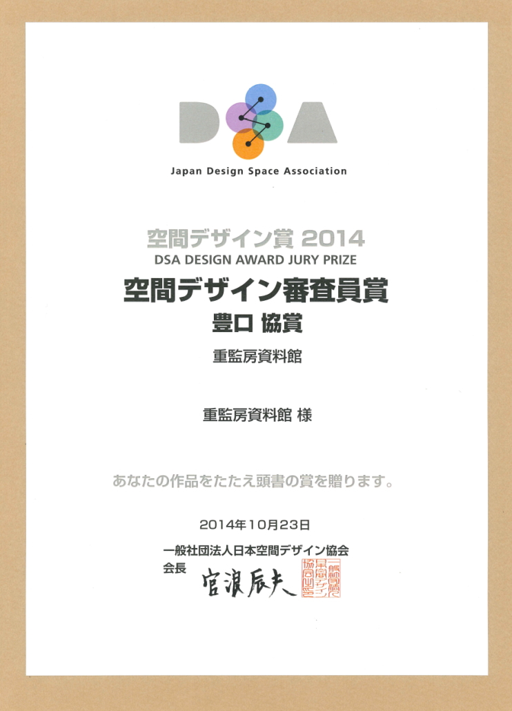 2014/12/10 当館が空間デザイン賞とサインデザイン賞を受賞しました