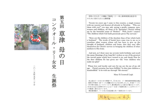 2015/05/20 5月20日に草津でコンウォール・リー女史の生誕祭が行われました