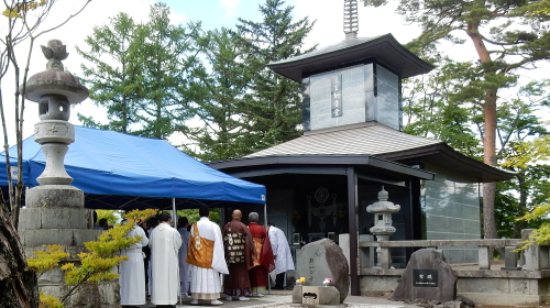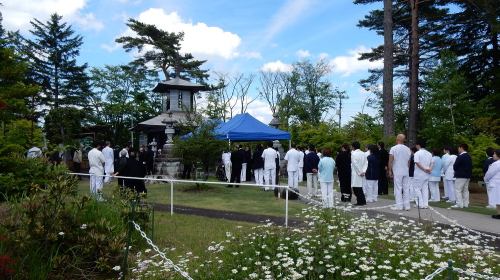 6月10日に栗生楽泉園で合同慰霊祭が挙行され、入所者の皆様をはじめ関係職員も多数列席して、昨年の式典以降にお亡くなりになられた5人を含む物故者2,017柱の御霊に祈りを捧げました。この合同慰霊祭は、平安時代の僧侶で浄土真宗の7高僧の1人とされる恵心僧都源信の命日に因んで、昭和9年6月10日に楽泉園自由地区グランドにて第1回合同慰霊祭が行われて以来、毎年6月10日に実施されているものです。(源信大師が他界したのは旧暦の寛仁元年6月10日とされています。)