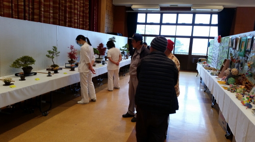11月1日から文化の日の3日まで、栗生楽泉園中央会館で恒例の文化祭が開催されました。会場には入所者や職員の皆さんが製作した手芸や絵画、盆栽など数々の作品が並び、訪れた人が見入っていました。