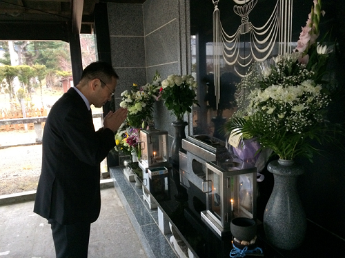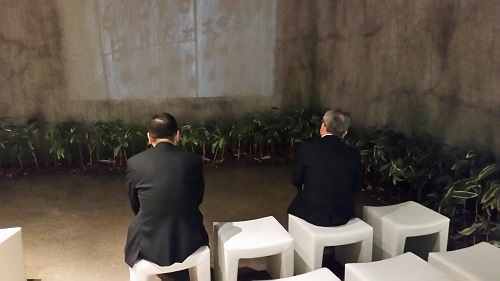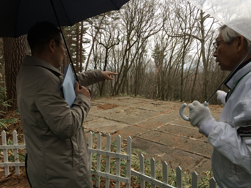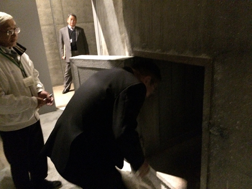 厚生労働省の人事異動で新たに健康局長となった福島靖正局長が重監房資料館の視察に訪れました。新局長は、まず跡地を視察して納骨堂に献花し、物故者の冥福を祈り手を合わせました。その後、当館を視察した局長は、実寸大の重監房に入るなど熱心に館内を見て回りました。