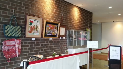 従前、何もなかった当館のエントランスを利用して楽泉園の入所者の皆さんの作品を展示するコーナーを設けました。手芸や盆栽など力作ぞろいです。入口の目に付く場所にありますので館内見学の際、是非ご覧下さい。