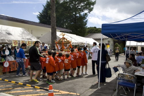 9月5日に栗生楽泉園の療養祭が行われました。会場となった中央会館前の広場には沢山の模擬店も出て園内は久しぶりの活気に包まれました。また、子供神輿も登場し会場に来られない入所者の皆さんにも楽しんでもらおうと不自由者棟の廊下を練り歩きました。午後の歌謡ショーも満席になる大盛況でした。