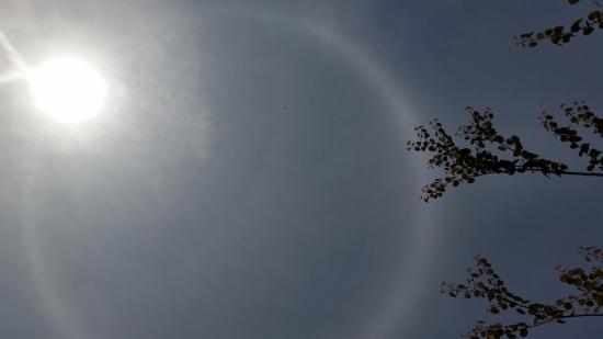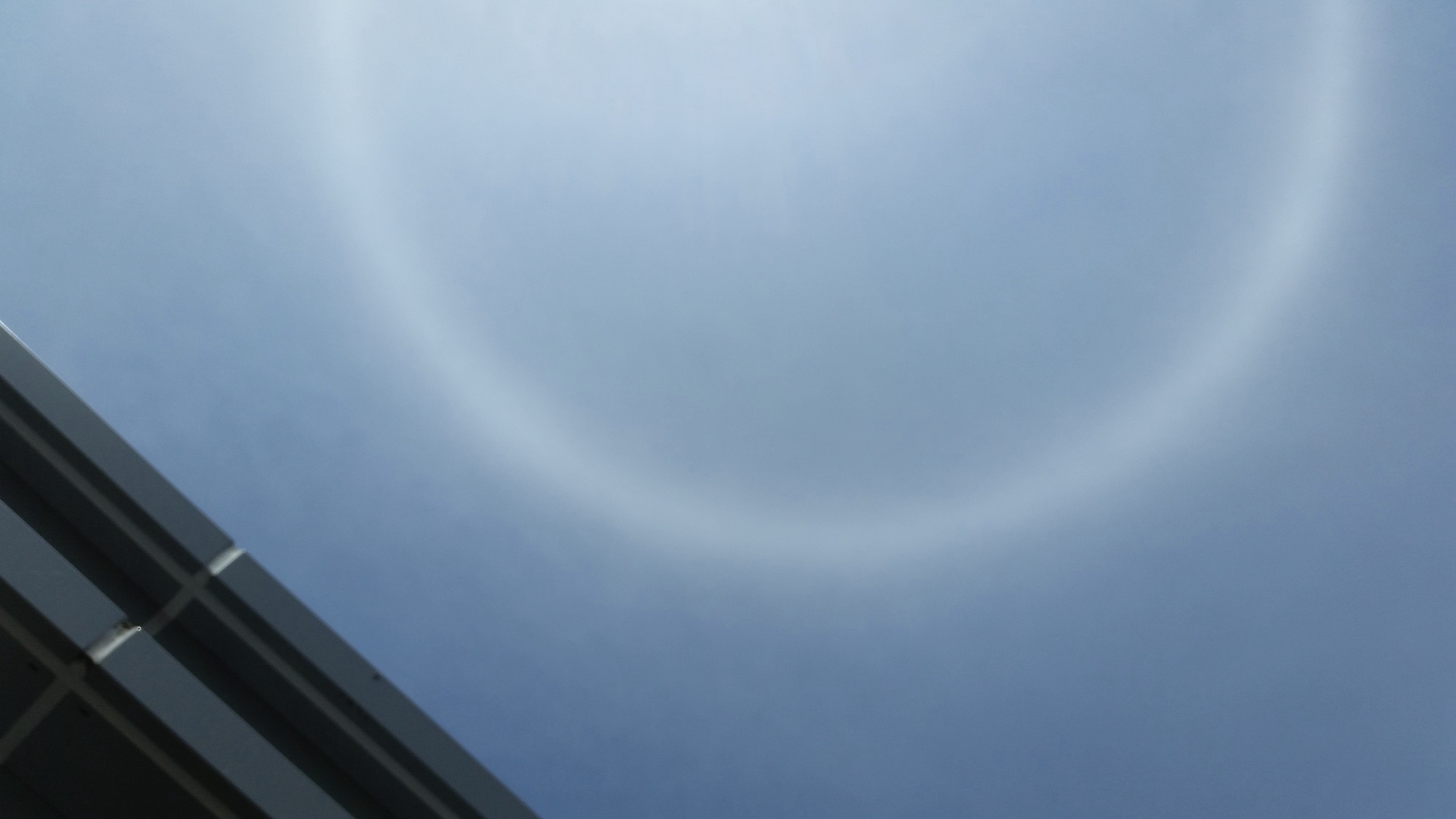 5月12日午前11時頃から午後1時頃にかけて当館の上空で太陽の周りに光の環が出来るブロッケンと思しき現象が見られました。同時刻に楽泉園の宿舎地区では虹色の環も目撃されました。