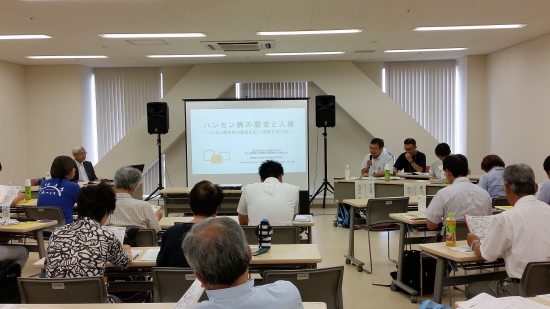第39回全国公民館研究集会が、平成29年8月24日から25日にかけて群馬県前橋市で開催されました。25日は前橋プラザ元気21で分科会が行われ、全国の公民館館長ら職員544人が参集しました。分科会は第1から第10までに分かれ、それぞれのテーマごとに発表が行われました。当館からは北原主任学芸員が出席し「人権学習と公民館」をテーマにした第5分科会において「ハンセン病の歴史と人権-ハンセン病対策の歴史を正しく理解するために-」と題して講演を行いました。第5分科会の司会は渋川市古巻公民館の長谷川福次館長、出席者は35人で皆さん熱心に聞いておられました。指導助言者として列席された共愛学園前橋国際大学地域共生研究センターの前田由美子先生からは、「偶然の歴史上の出来事に端を発する想像上のヒエラルキーたる不正な差別」などを例示されたうえで「身近な問題としてとらえることが重要」「若者に気付きのきっかけを与えるための活用」などのアドバイスがなされ盛況のうちに終了しました。