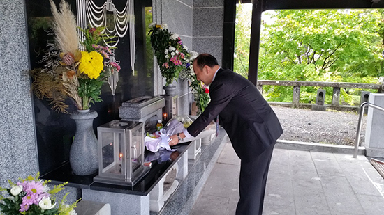 納骨堂に献花し、参拝する厚生労働省の川野難病対策課長