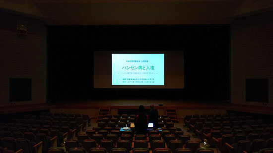 12月1日に片品村教育委員会主催の映画会が開催され、「あん」が上映されました。当館では、同教育委員会からのご依頼を受けて、会場となった片品村文化センターのエントランスホワイエで「それは百年前に始まった-ハンセン病療養所監禁室-」のプチ・パネル展を行いました。また、上映に先立って「ハンセン病と人権」と題する講演をし、老若男女多くの村民の皆様にハンセン病の歴史や人権啓発の大切さについて話しをお聞きいただきました。