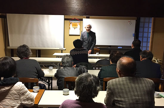 平成29年12月4日に富山市の真宗大谷派玉永寺でハンセン病問題に関する学習会が開催されました。栗生楽泉園の入所者の皆様の中には同宗派の信徒も多く、らい予防法が廃止された平成8年には「無批判に国家政策に追従し、隔離という政策徹底に大きな役目を担った」とする謝罪声明を出すなど、ハンセン病問題の理解に取り組んでいます。会場となった玉永寺の大広間には信徒の方々をはじめ、本願寺派の僧侶の皆さんなど門閥を越えた多くの人が参集して熱心に聞き入っておられました。