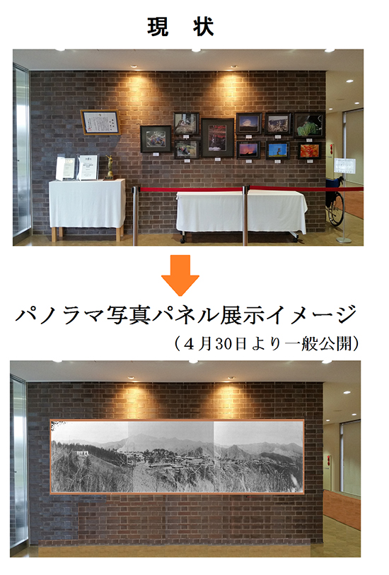 現在3枚の写真を合成し、開館記念日である4月30日より一般公開すべく縦1.2m、横3.6mの大型パノラマ写真パネルを制作中です。