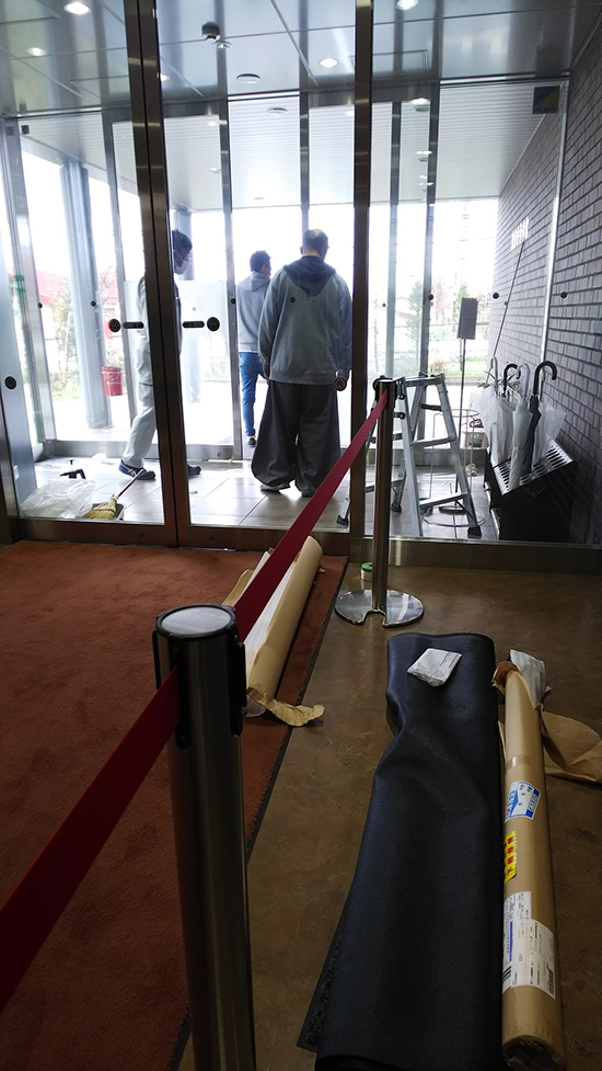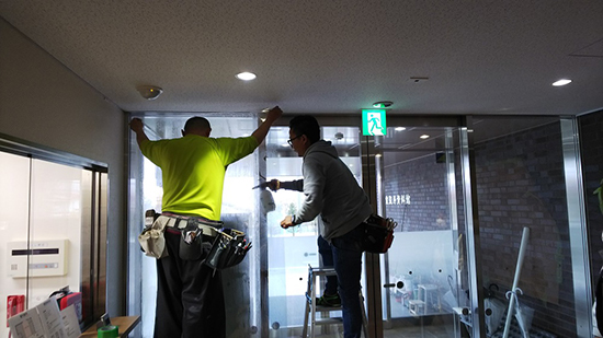 2018/5/2 正面玄関の自動ドアのガラスをフィルム加工しました