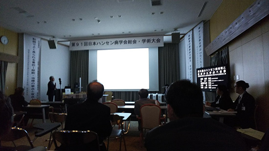 国立療養所東北新生園において、平成30年6月13日(水)から15日にかけて第91回日本ハンセン病学会総会・学術大会が開かれました。当館から北原主任学芸員、柏木学芸員が登壇して発表したほか、国立療養所栗生楽泉園の小林ソーシャルワーカーと栗生楽泉園社会交流会館の干川学芸員も発表しました。また、当館の運営委員会委員である松岡先生もシンポジウムのシンポジストとして登壇しました。