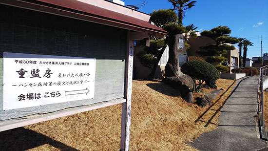 平成31年1月26日(土)に、たかさき人権プラザで「重監房―失われた人権と命―」と題する人権公開講座が開催されました。当館の北原主任学芸員が午前中に高浜会場、午後は倉賀野会場でそれぞれ講演し、多くの市民の皆さんが参加されました。講演を聴いて「是非資料館も見に行きたい。」とおっしゃる方々もおられました。