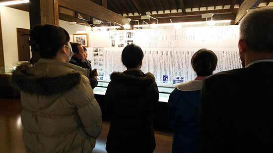 歴史年表の解説を聴く上毛新聞社新人の皆さん