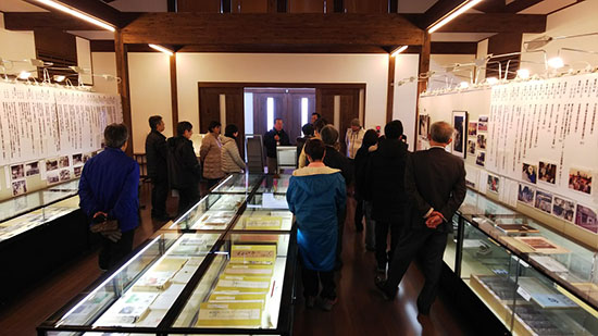 この時期毎年恒例の春の雪に見舞われた平成31年4月3日(水)、寒風吹き荒ぶ中でふたつの新人研修会がありました。午前中は4月1日付で国立療養所栗生楽泉園に着任された新人職員を対象とした園内視察と資料館見学が行われ、栗生楽泉園社会交流会館と連携して解説と案内を行いました。午後は上毛新聞社の新人研修の一環として新人社員の皆さんが当館を見学しました。初めてハンセン病問題に接する参加者も多く、皆さん熱心に耳を傾けておられました。