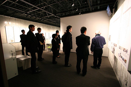 再現映像に見入る上毛新聞新入社員の一行