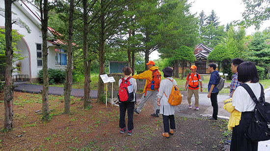 ボランティアガイドが本日のコースを説明