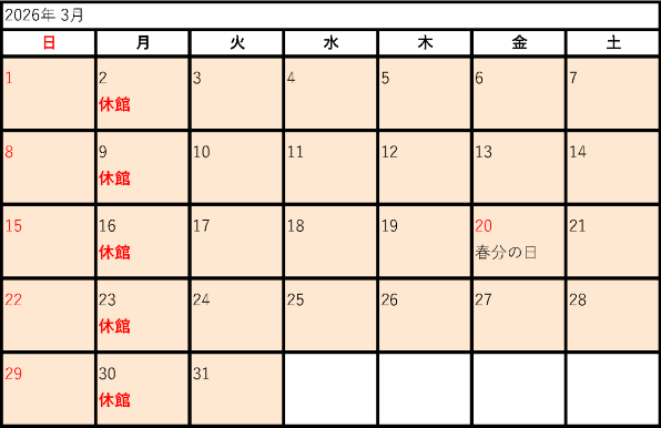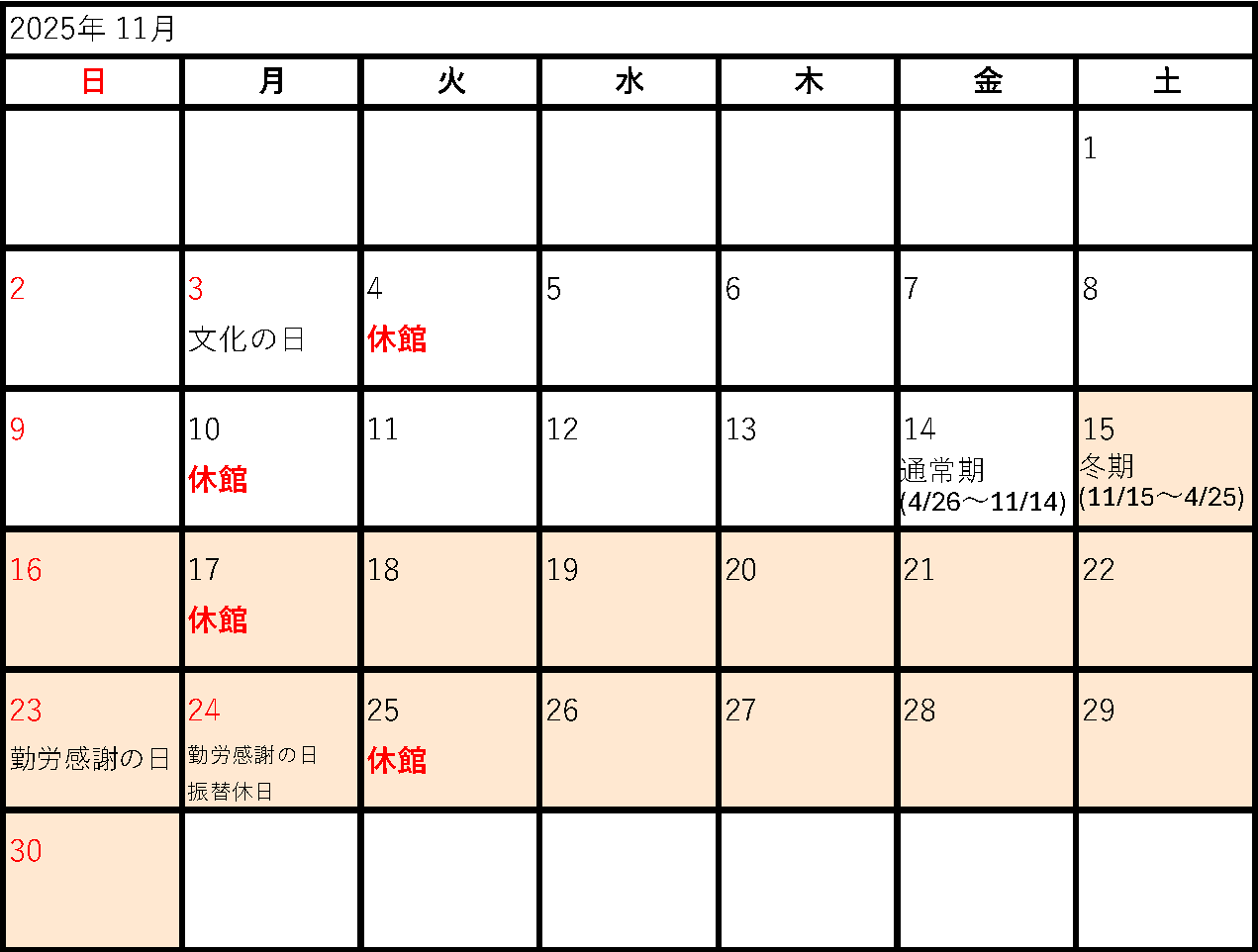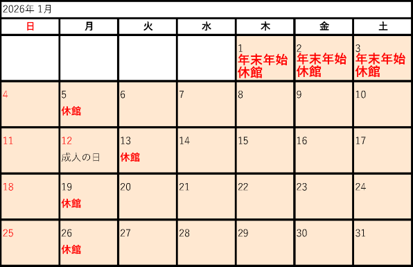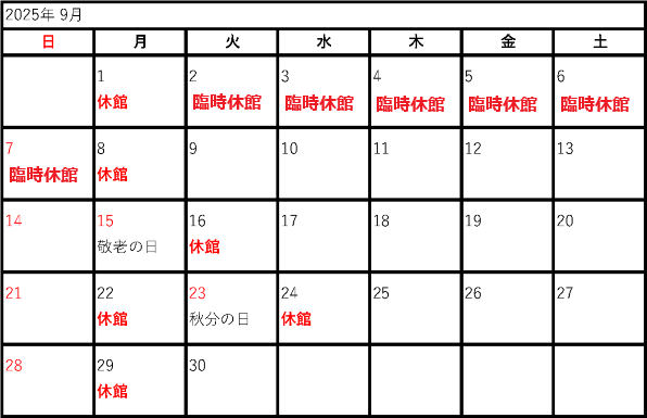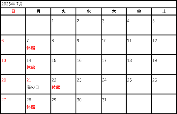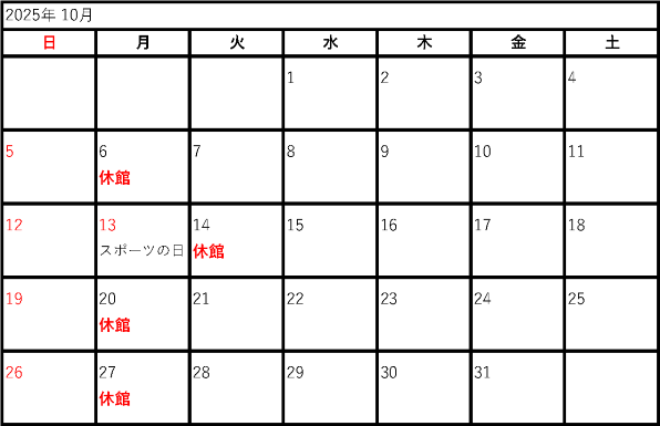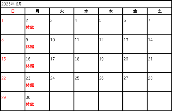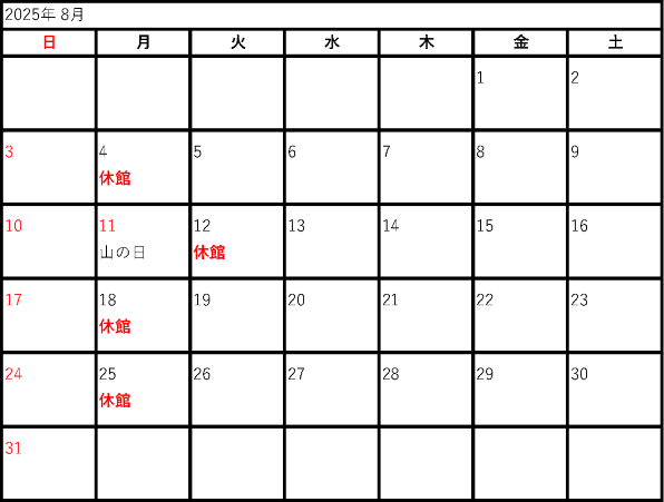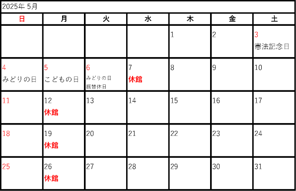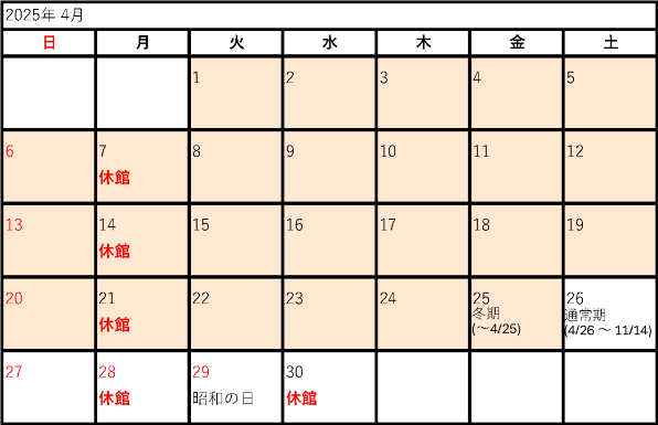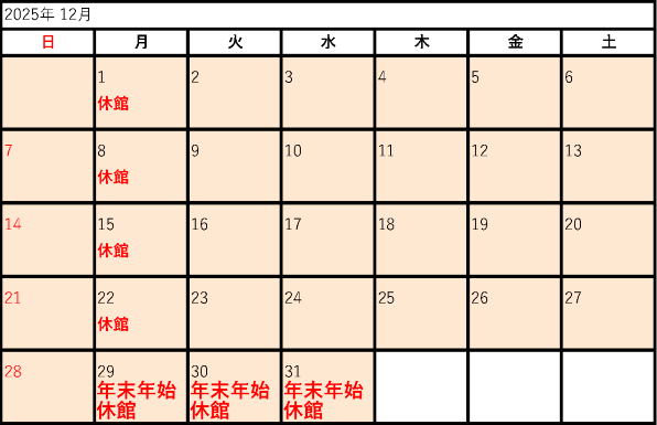 2025年度開館カレンダー